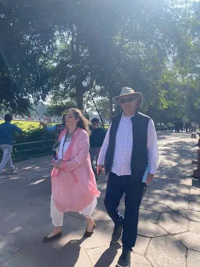 walking by the side of the Taj Mahal
